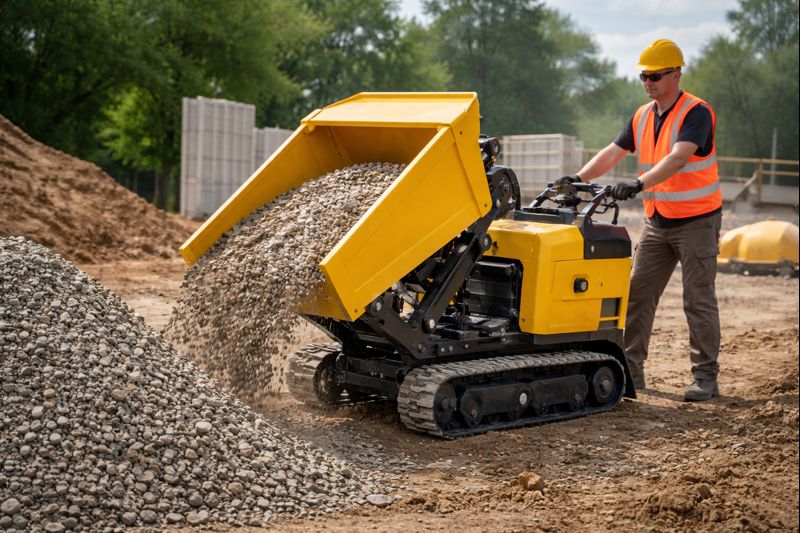 A mini dumper reduces manual handling and keeps material movement controlled and stable.